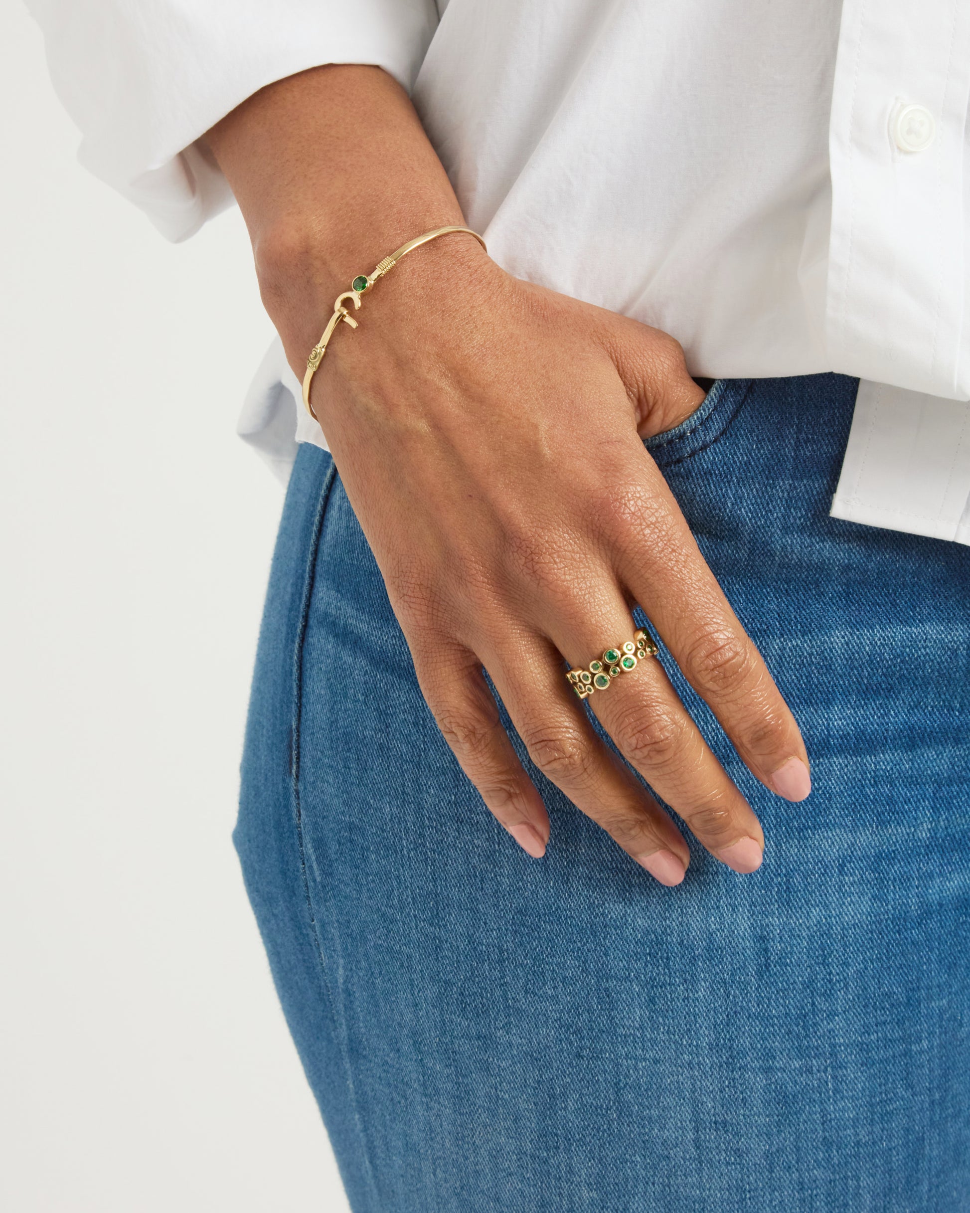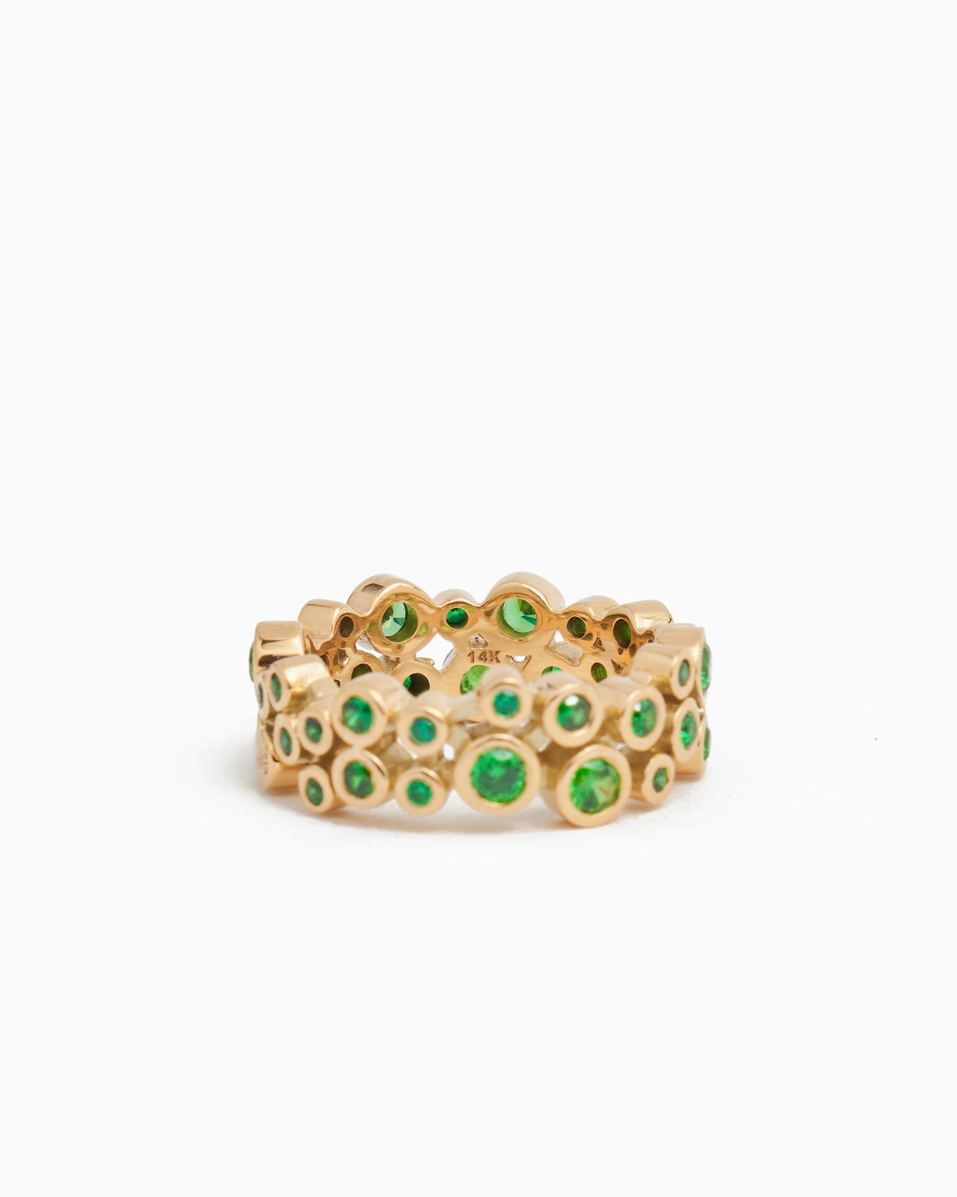 The Stone Bubble Ring effortlessly captures attention. Handcrafted in 14K solid gold, this whimsical design combines several sizes of faceted green zircon stones to create a statement piece that will undoubtedly become one of your favorites. Whether worn alone or paired with a set of rings, this bubble ring makes a standout addition to your jewelry collection. Pair with more pieces from our Bubble Collection for a cohesive look!