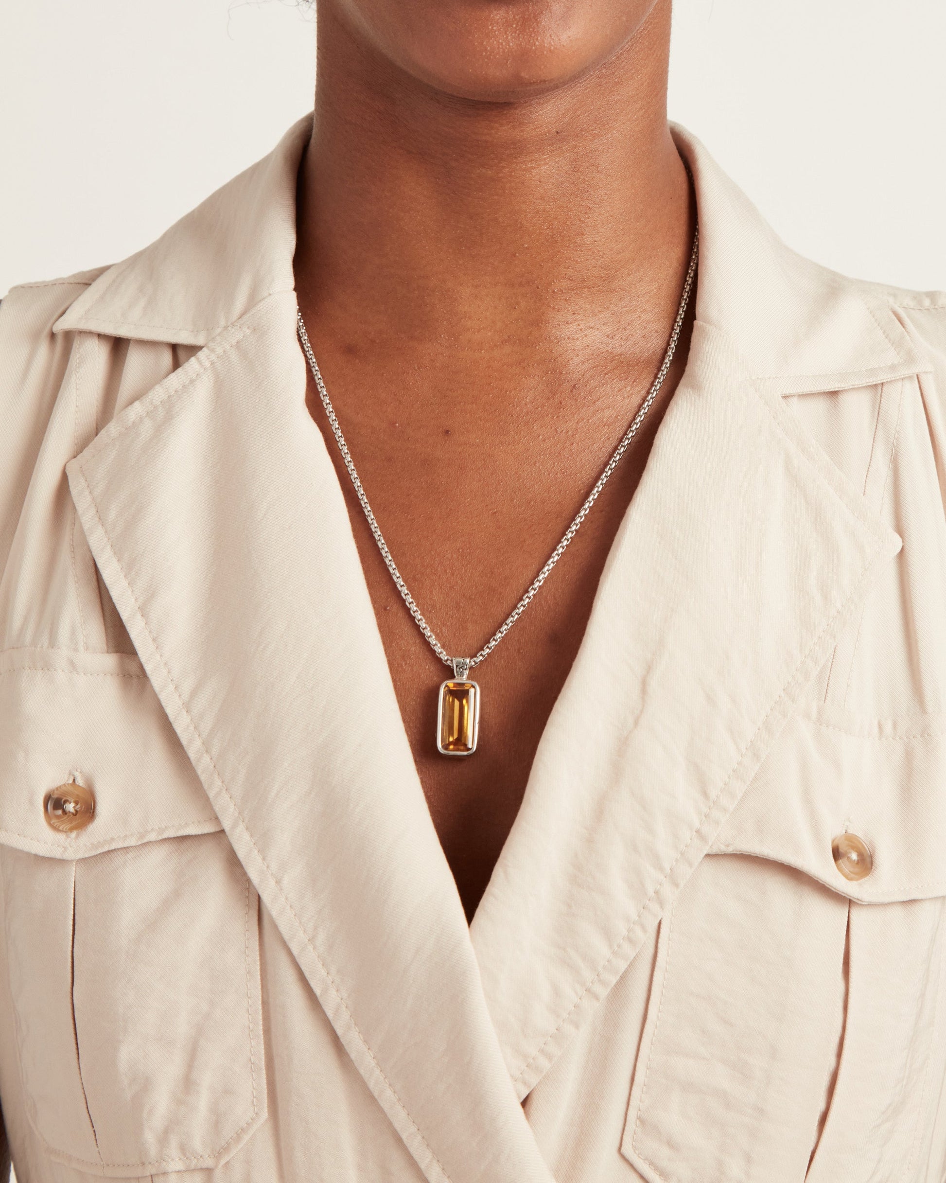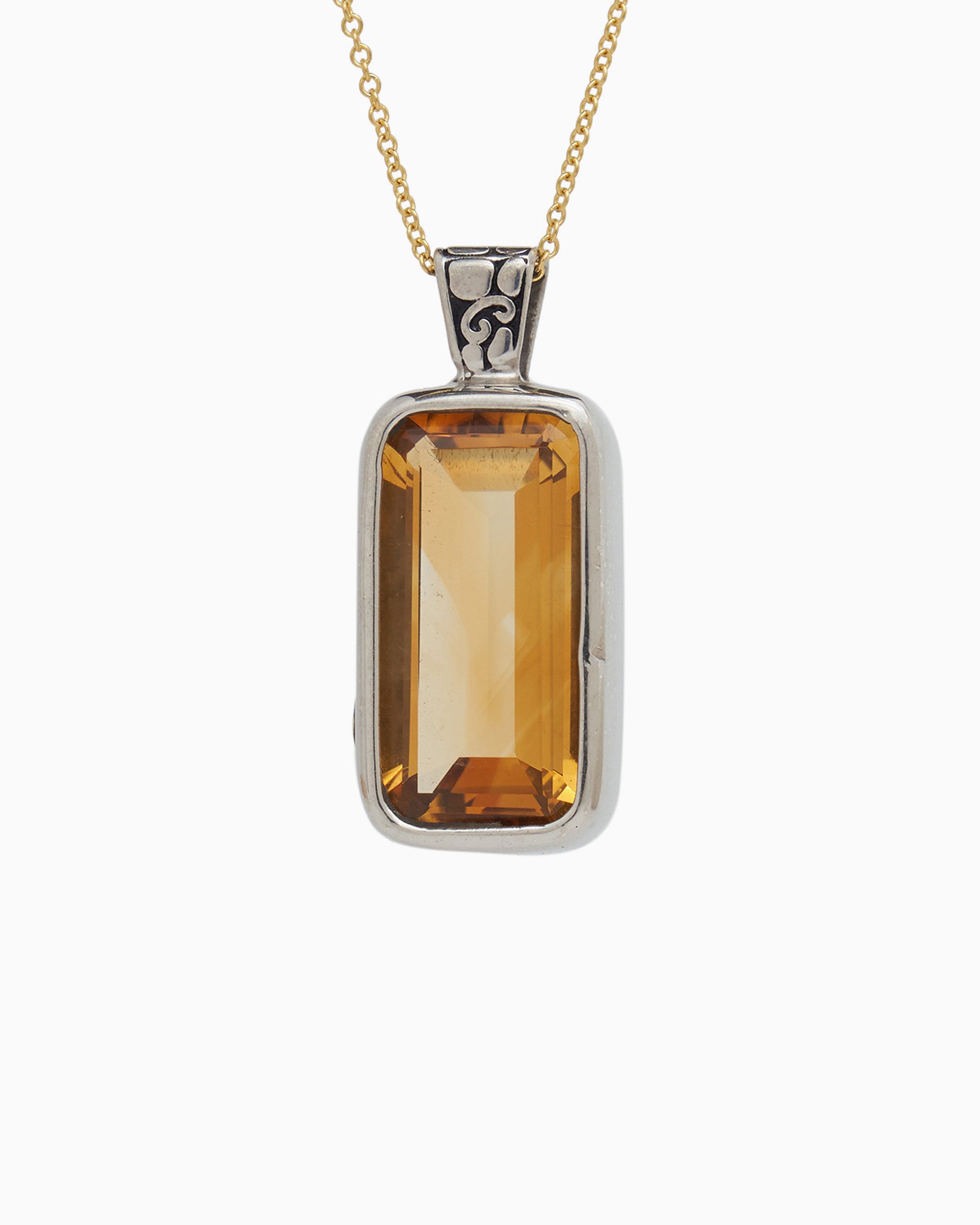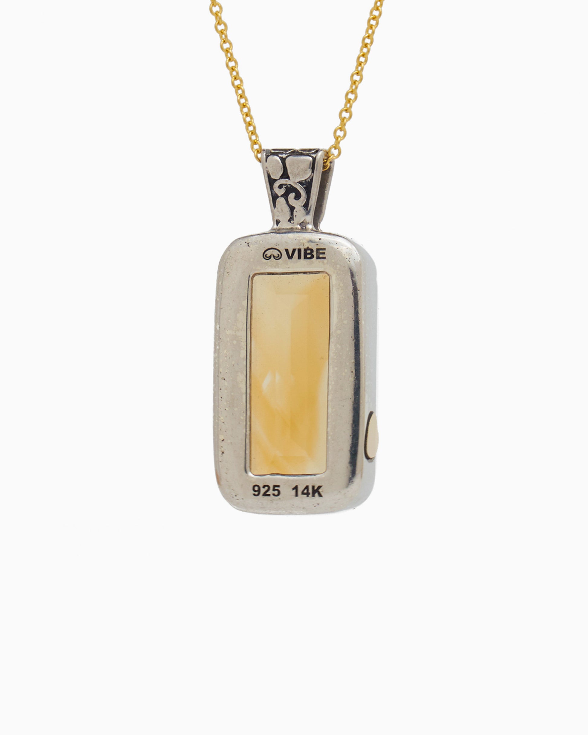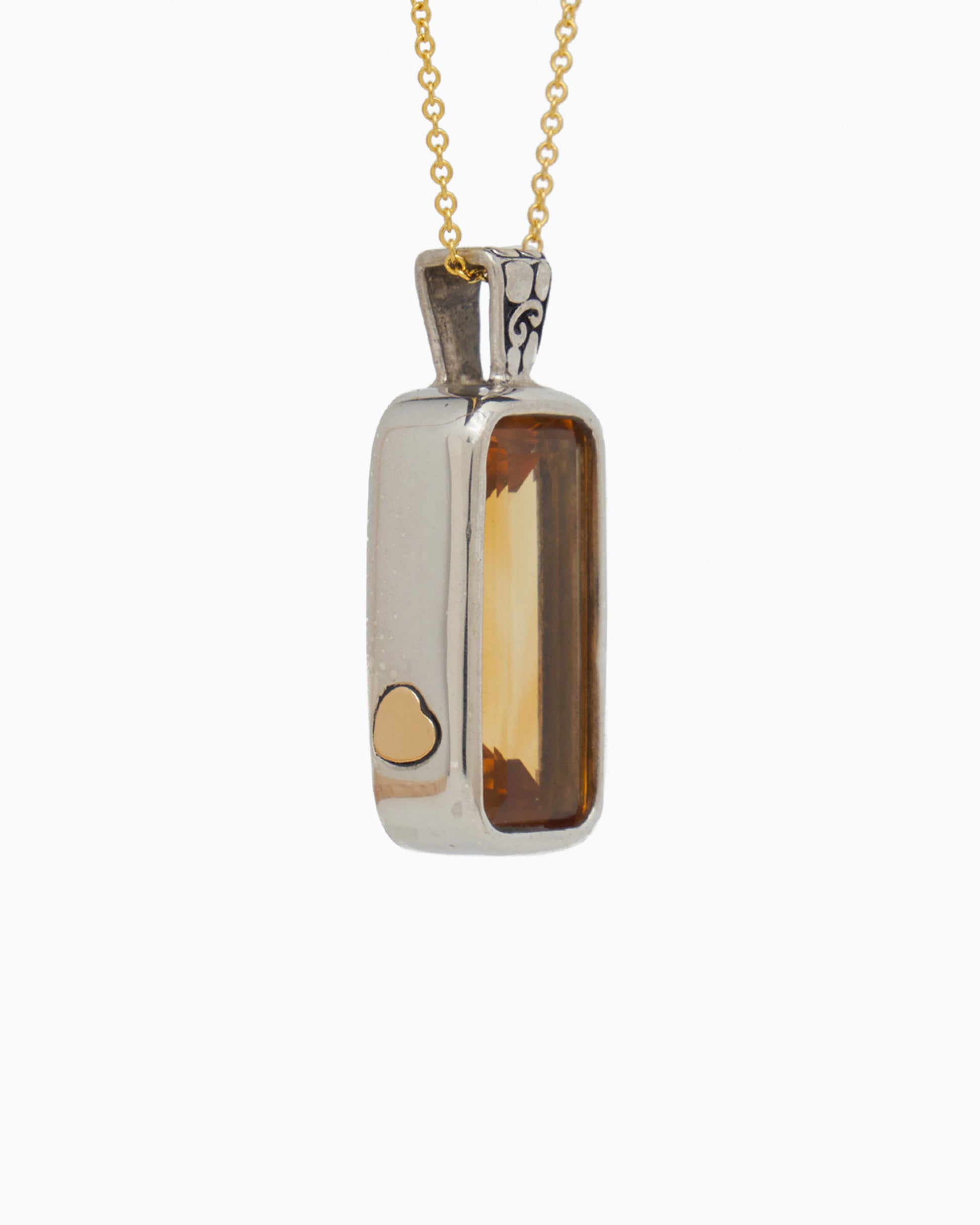 The Stone Pendant is a striking statement piece designed to elevate any outfit. Handcrafted from sterling silver, it features a 14K solid gold heart detail and is adorned with a captivating faceted citrine stone. Take note of the distinctive turtle texture with petroglyphs on the bail, adding an extra layer of charm.