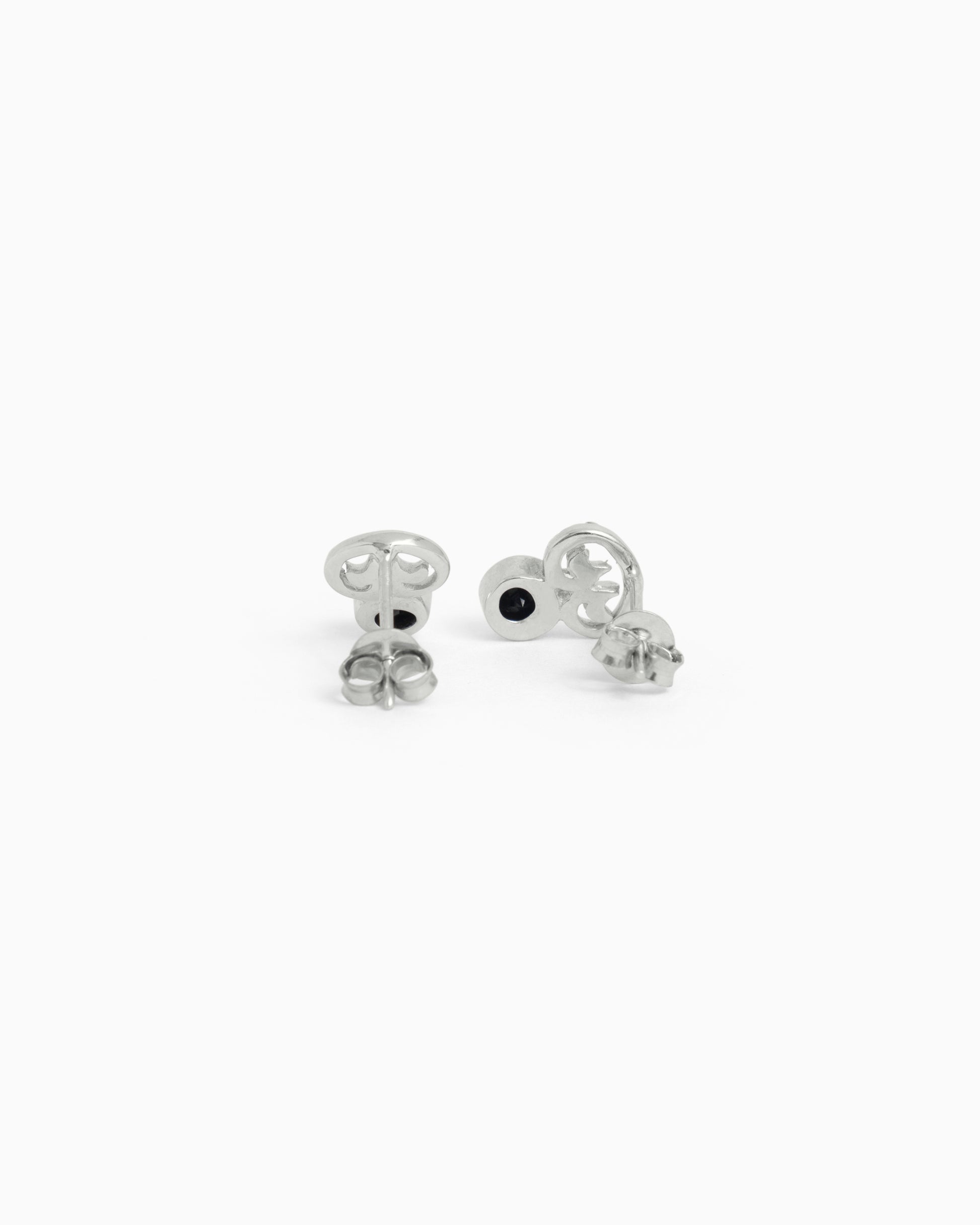The Stone & Petroglyph Studs, handcrafted in sterling silver, feature a brilliant faceted stone set under a St. John petroglyph. The petroglyph is inspired by ancient carvings created by the Taino tribe circa 900 AD on the island of St. John in the US Virgin Islands.