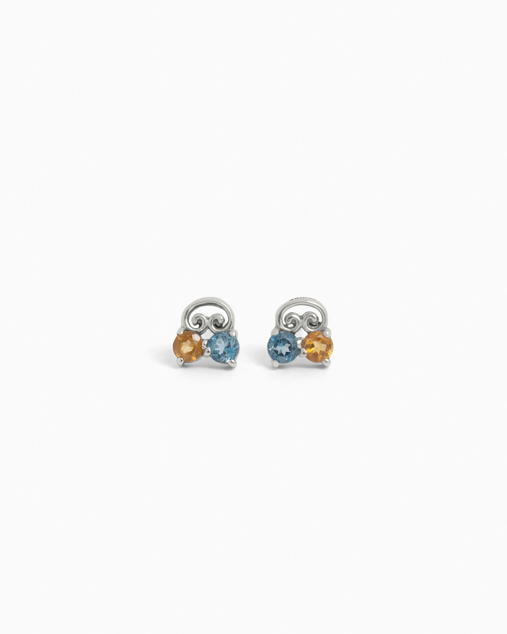 The Petroglyph & Double Stone Studs are hand crafted in sterling silver and feature a faceted citrine and London blue topaz stone with our signature petroglyph at the top. This earring will add a little sparkle to your everyday look.