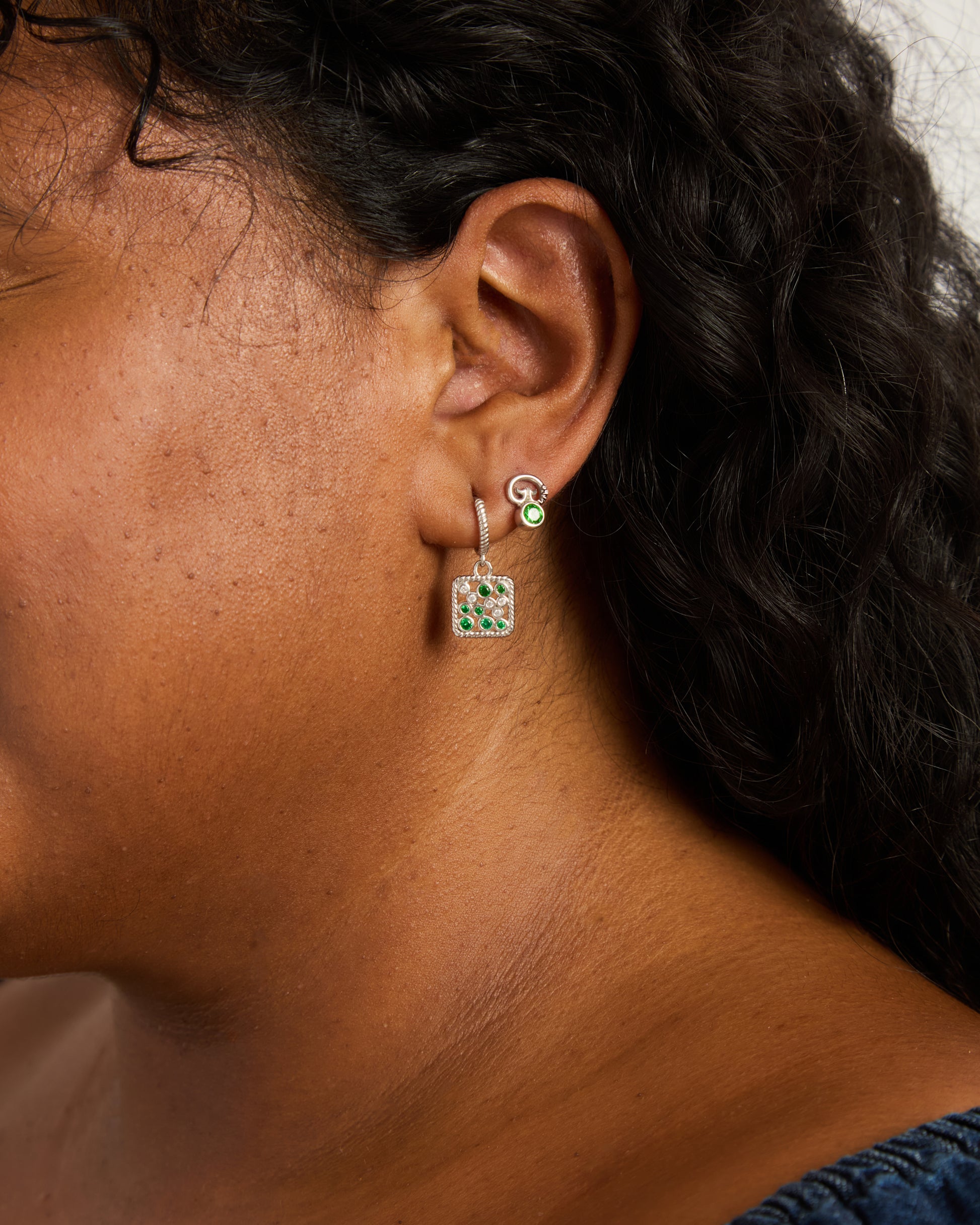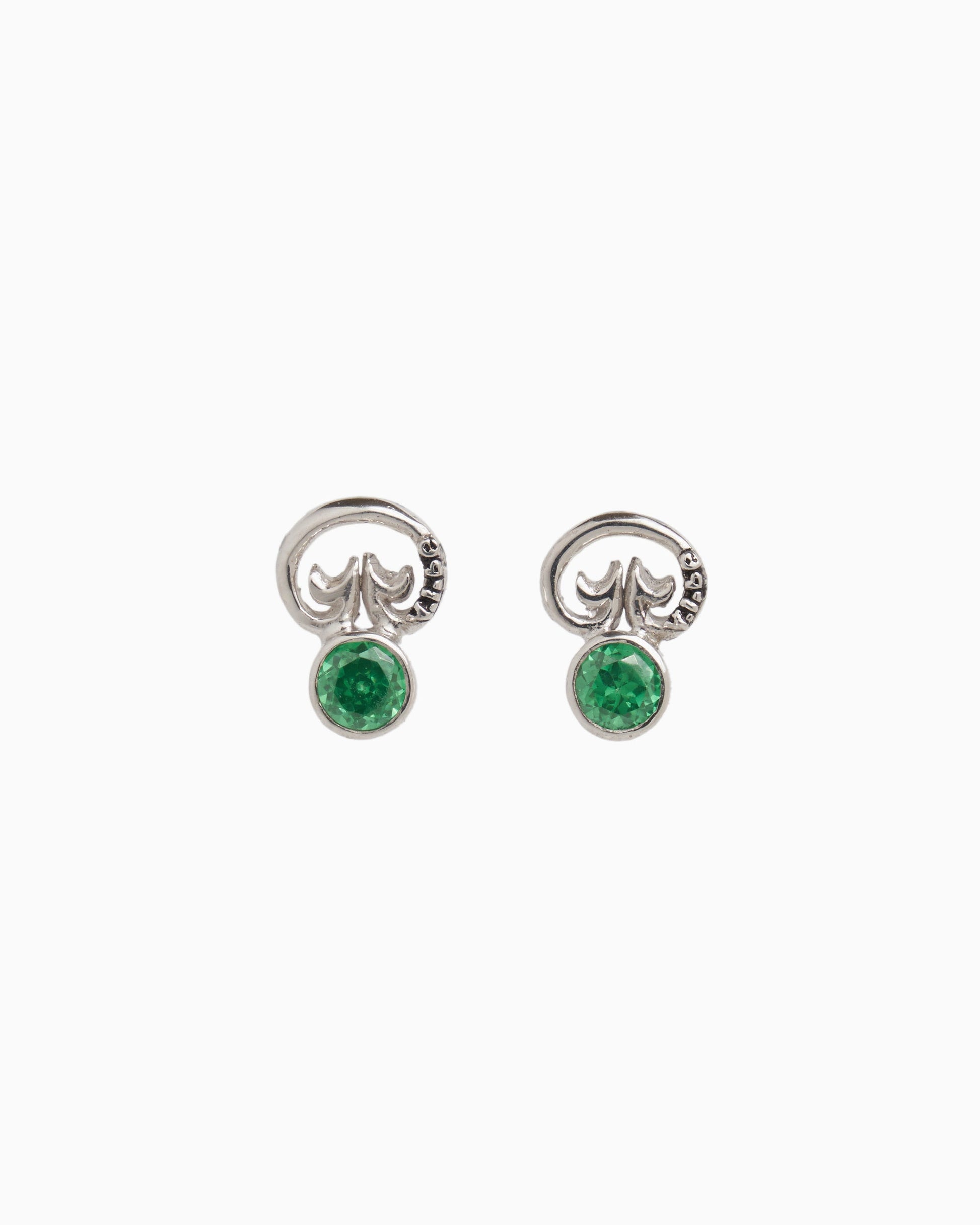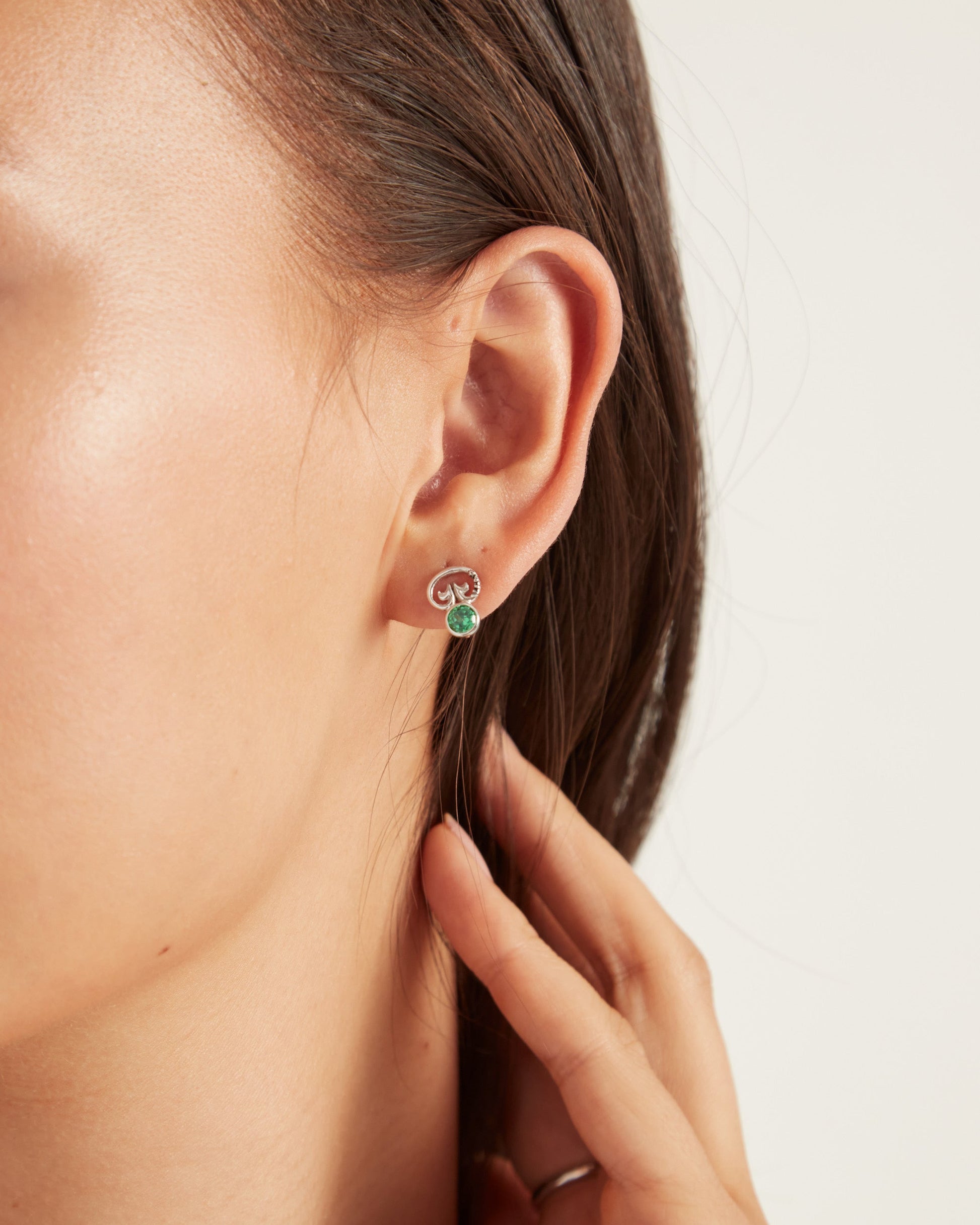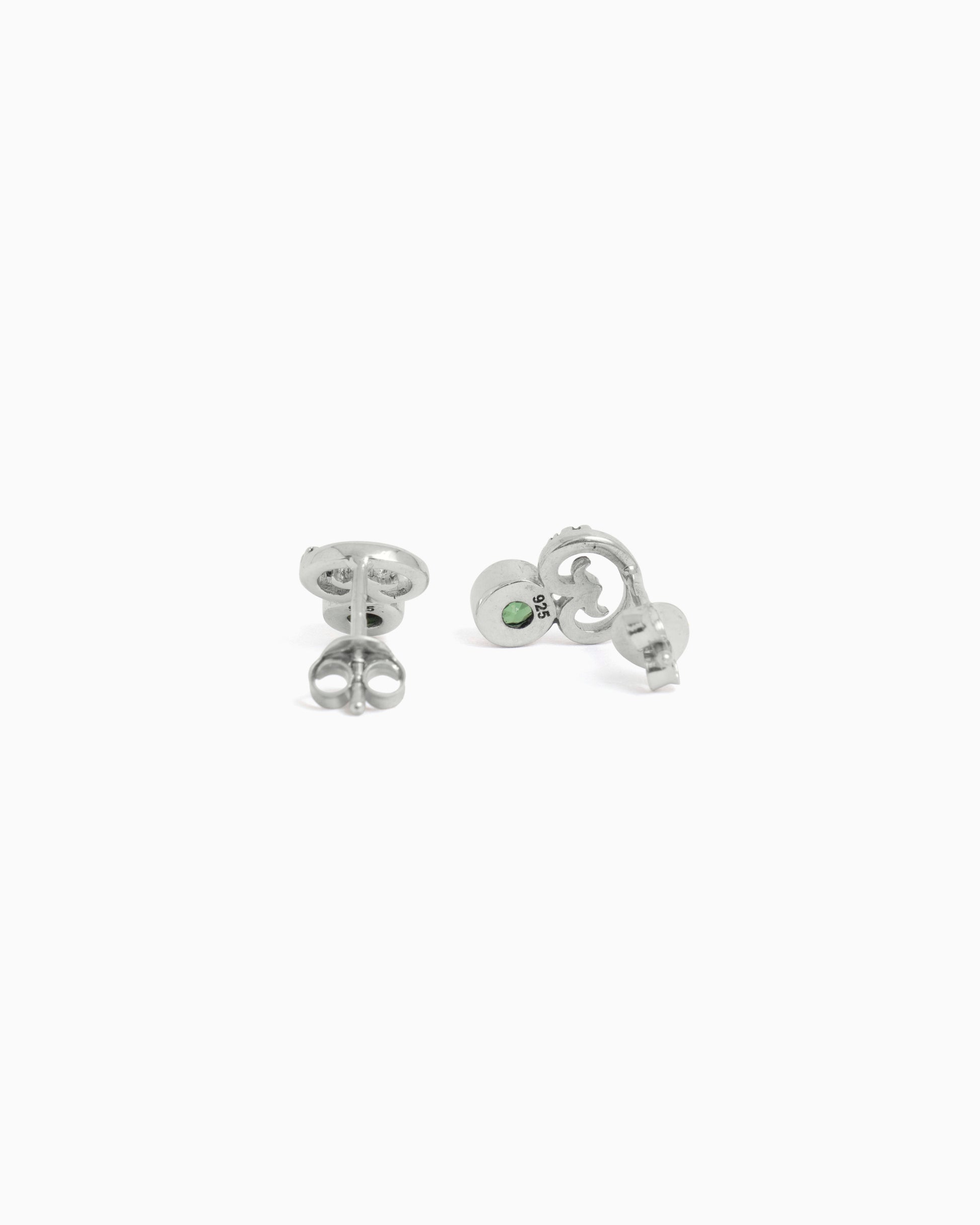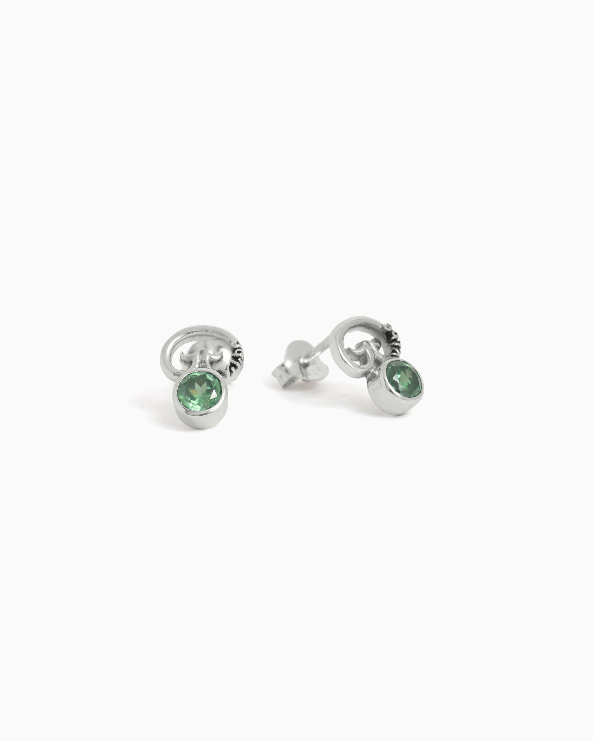 The Stone & Petroglyph Studs, handcrafted in sterling silver, feature a brilliant faceted stone set under a St. John petroglyph. The petroglyph is inspired by ancient carvings created by the Taino tribe circa 900 AD on the island of St. John in the US Virgin Islands.
