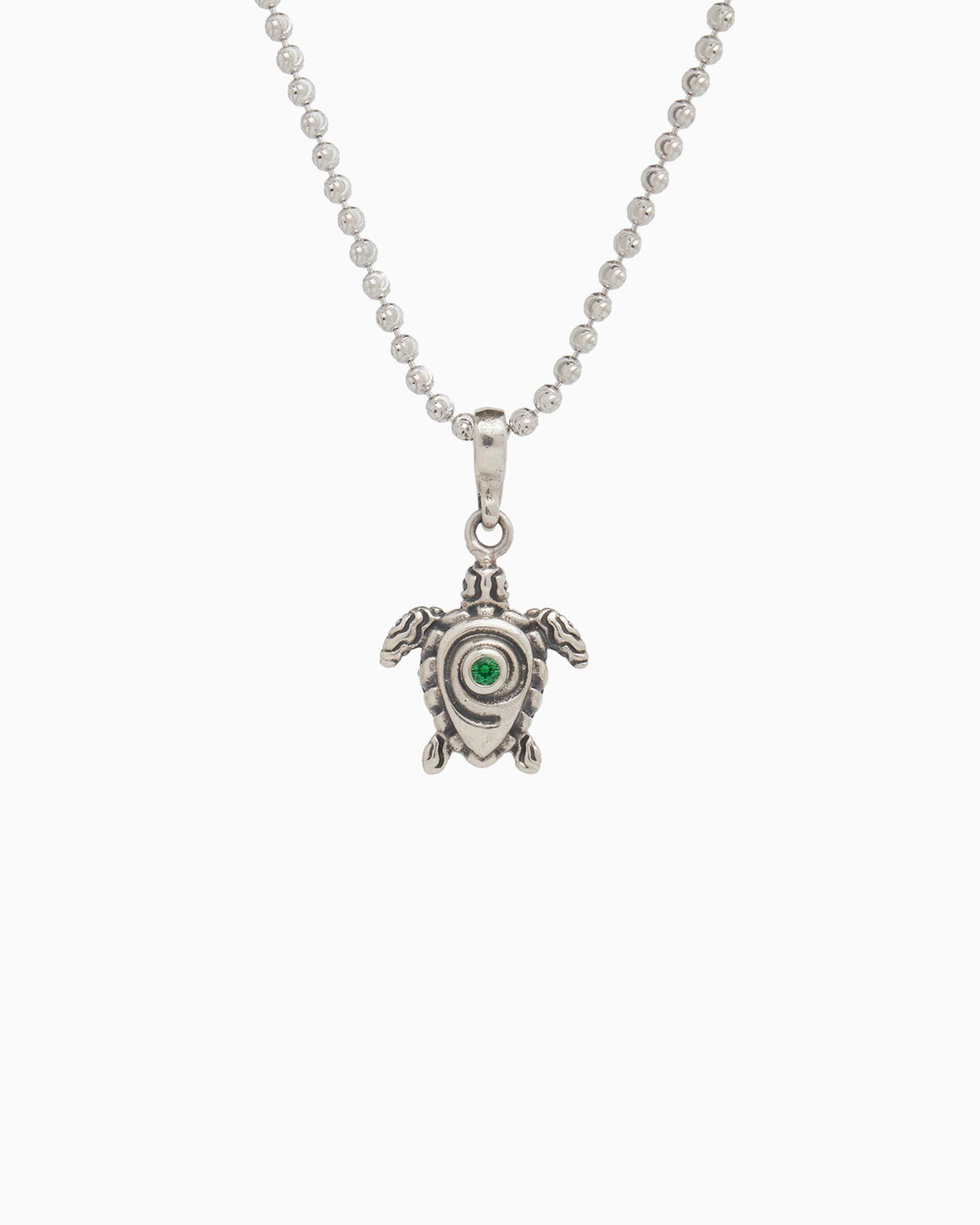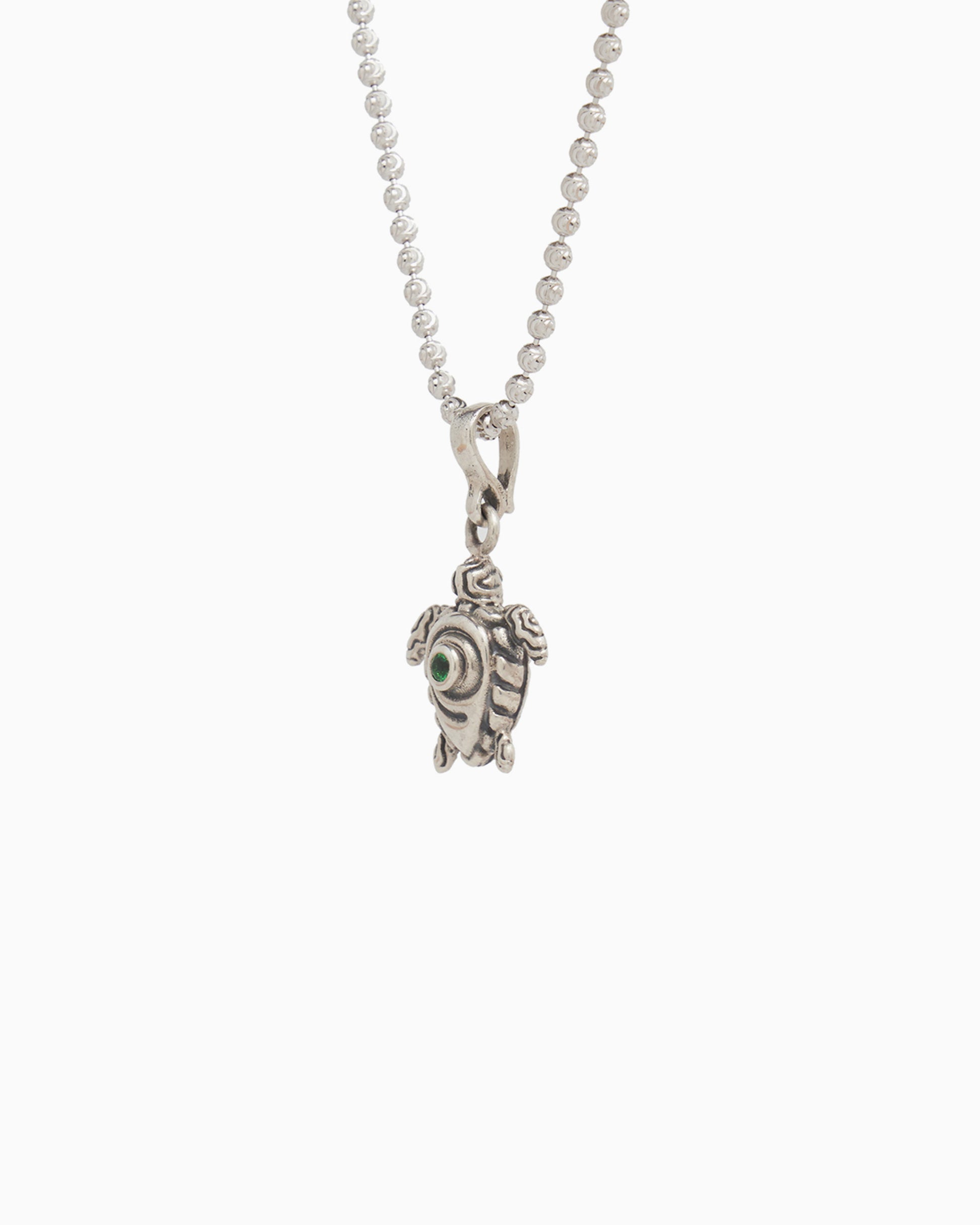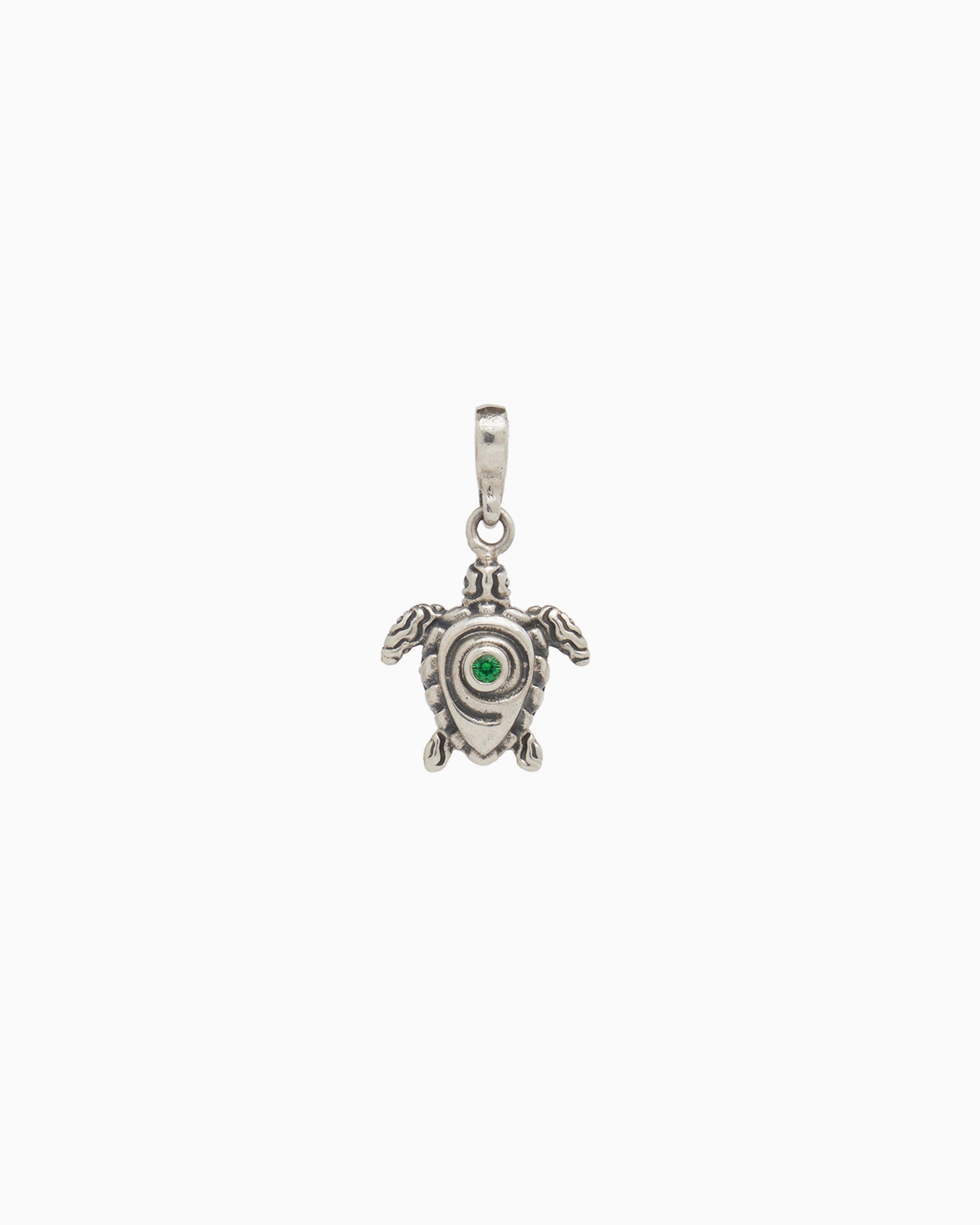The Swirled Turtle Pendant captures the essence of the sea with its unique swirl design on the shell, showcasing a faceted green zircon stone at its center. The turtle's body features our signature reef texture, designed to replicate the intricate patterns found in a reef.