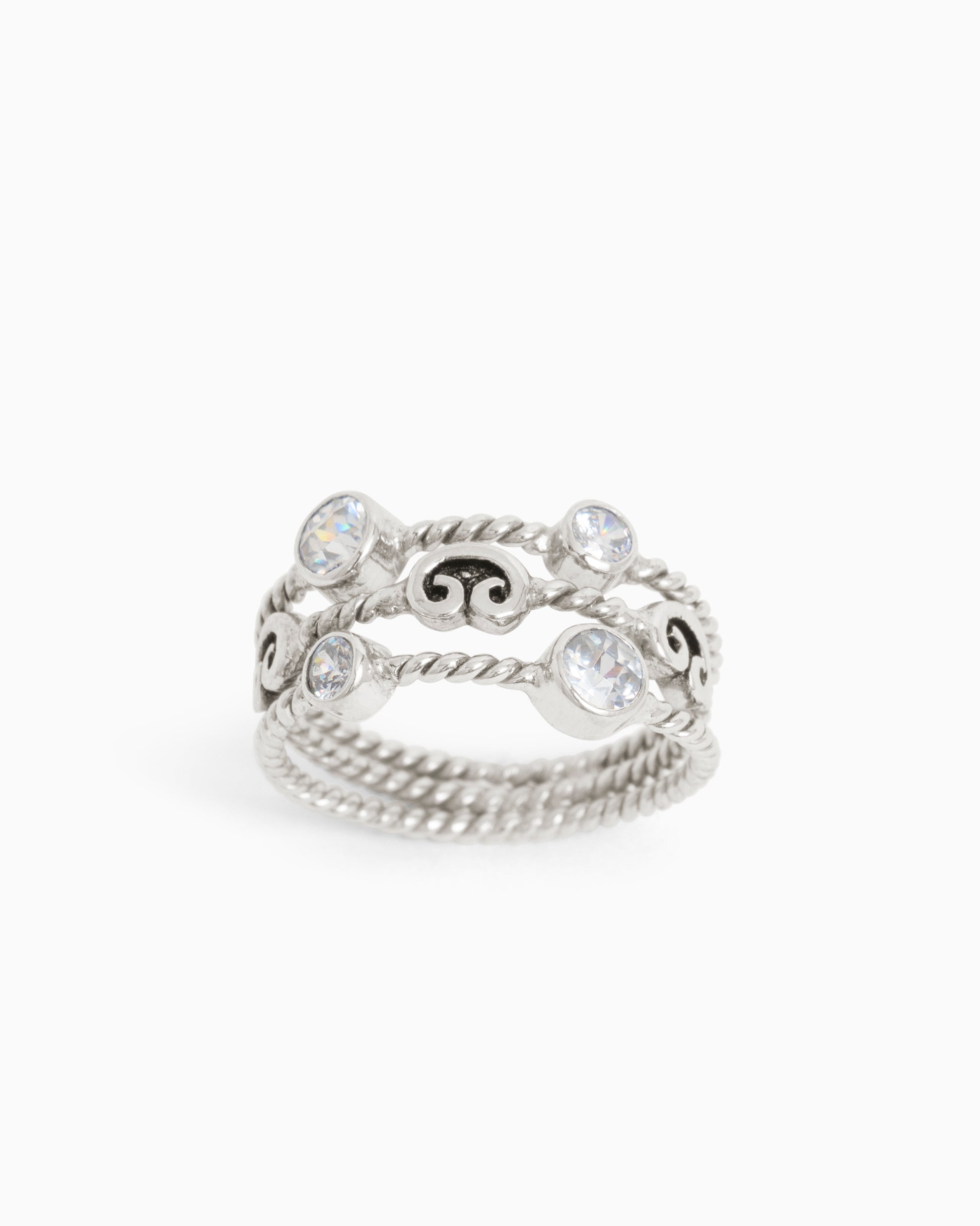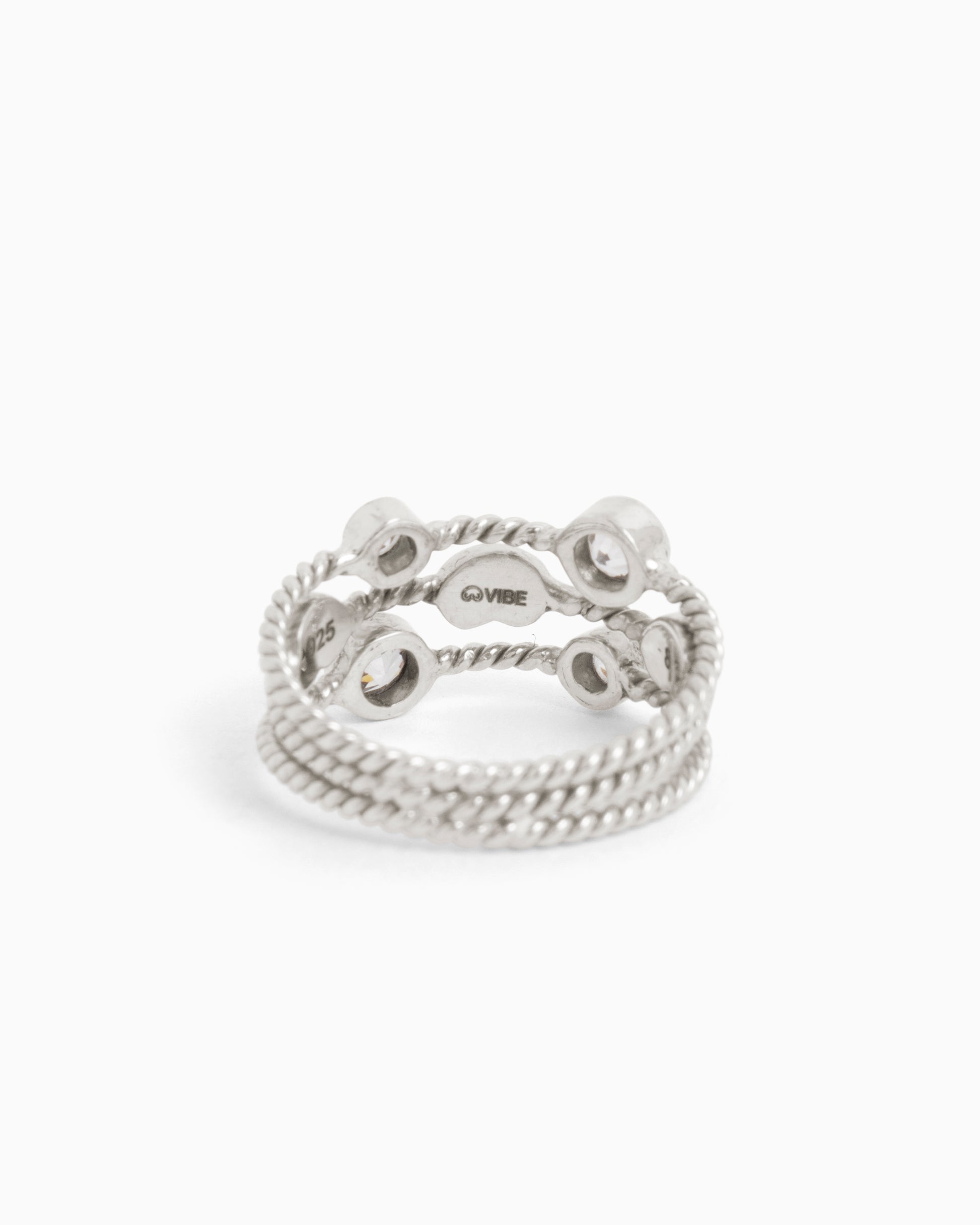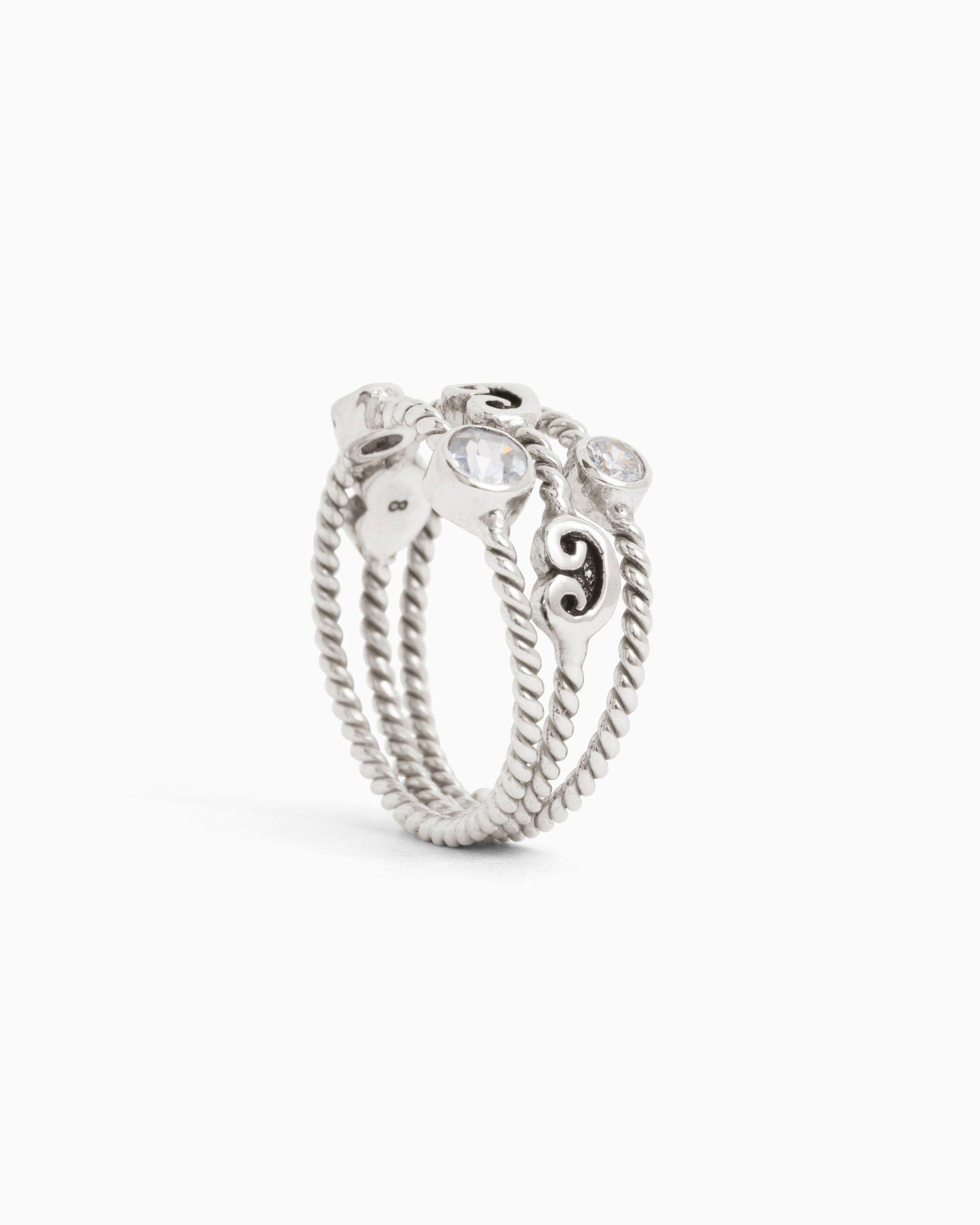 The Triple Band Twisted Ring is a fun and unique design. With three intertwined rope-like bands, faceted white zircon stones, and petroglyphs on the bands, this piece is sure to become a staple in your collection. Each band is a tribute to one of the three iconic U.S. Virgin Islands: St. John, St. Thomas, and St. Croix. Elevate your everyday jewelry ensemble with this statement ring.