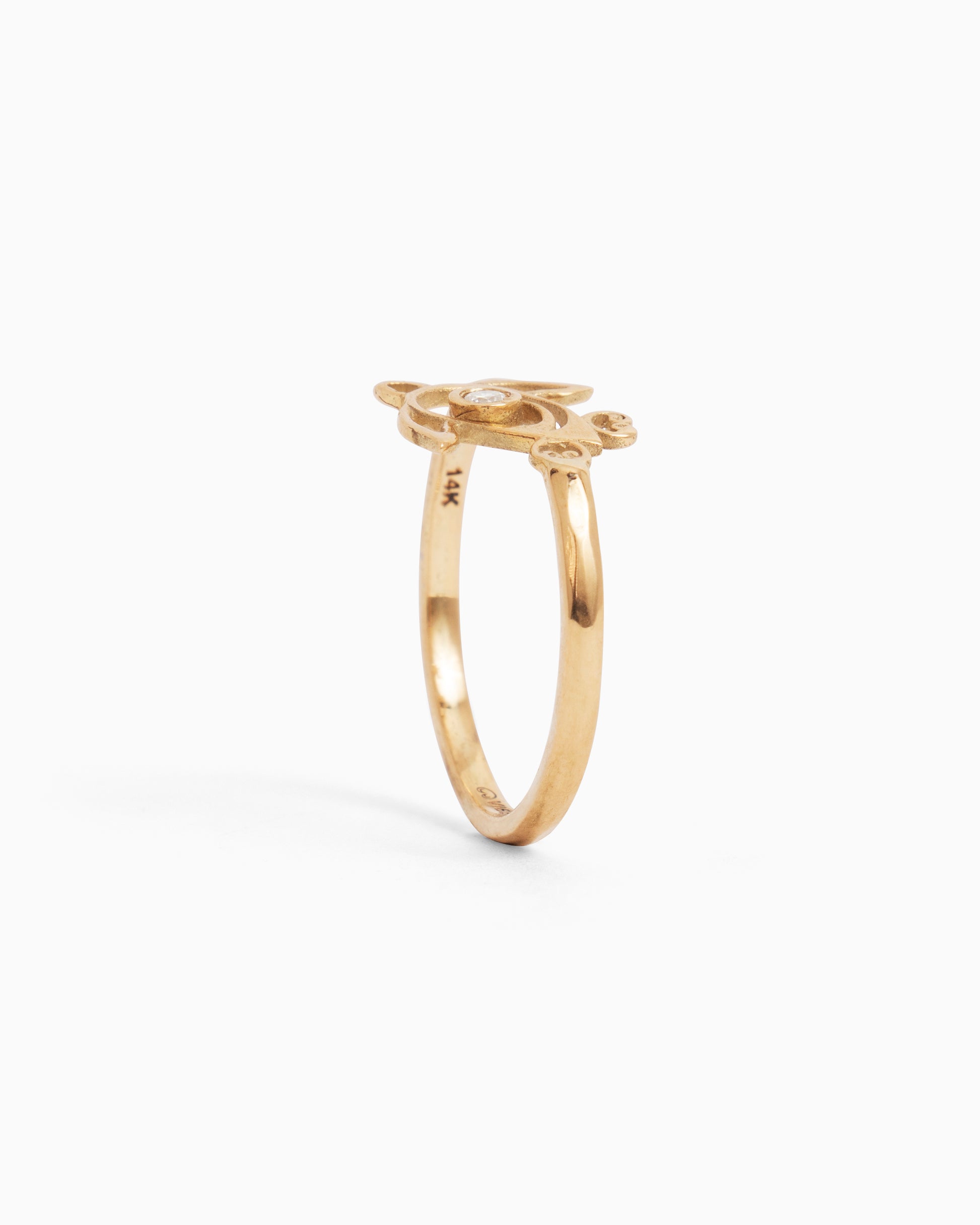 Turtle Outline Ring with Diamond