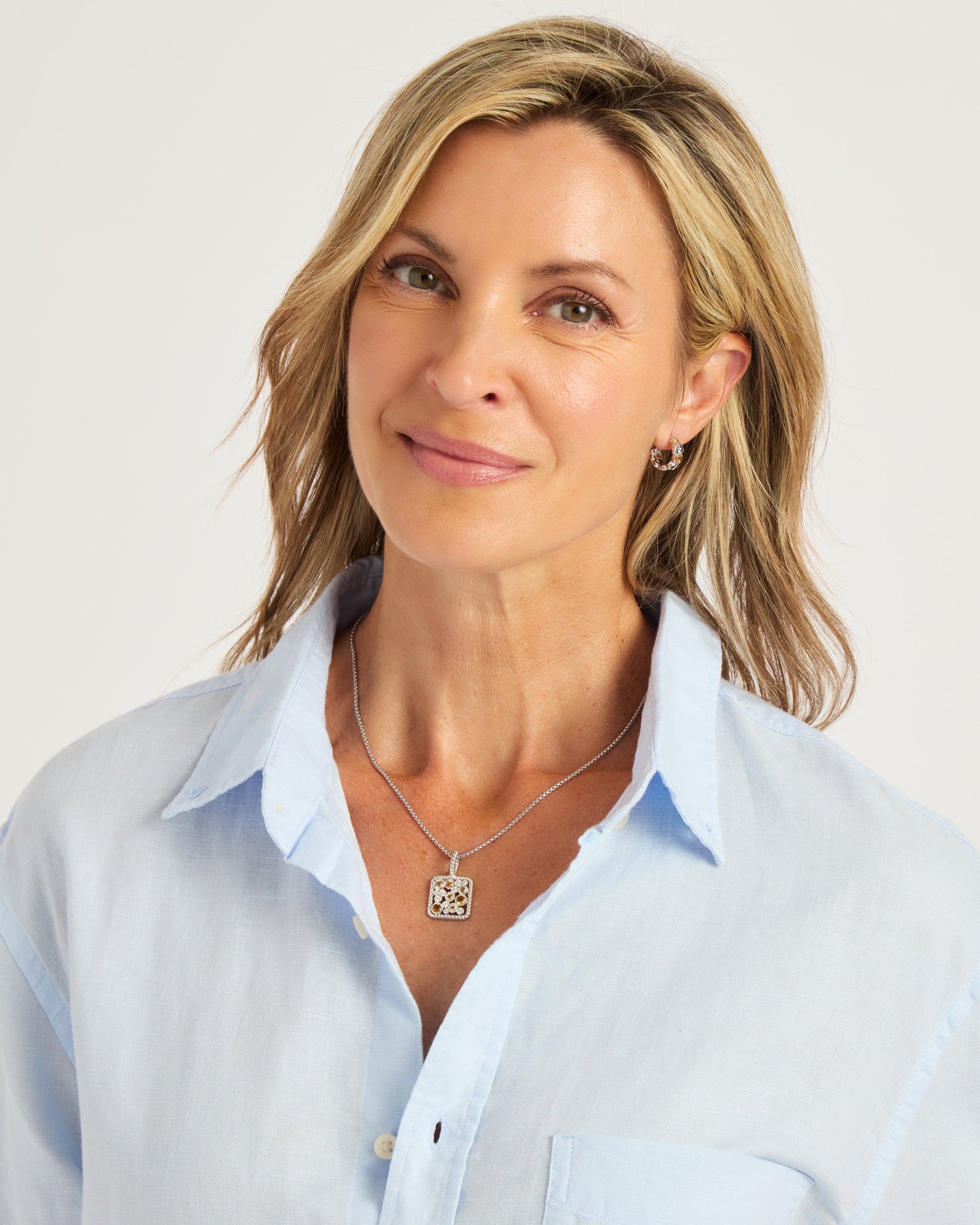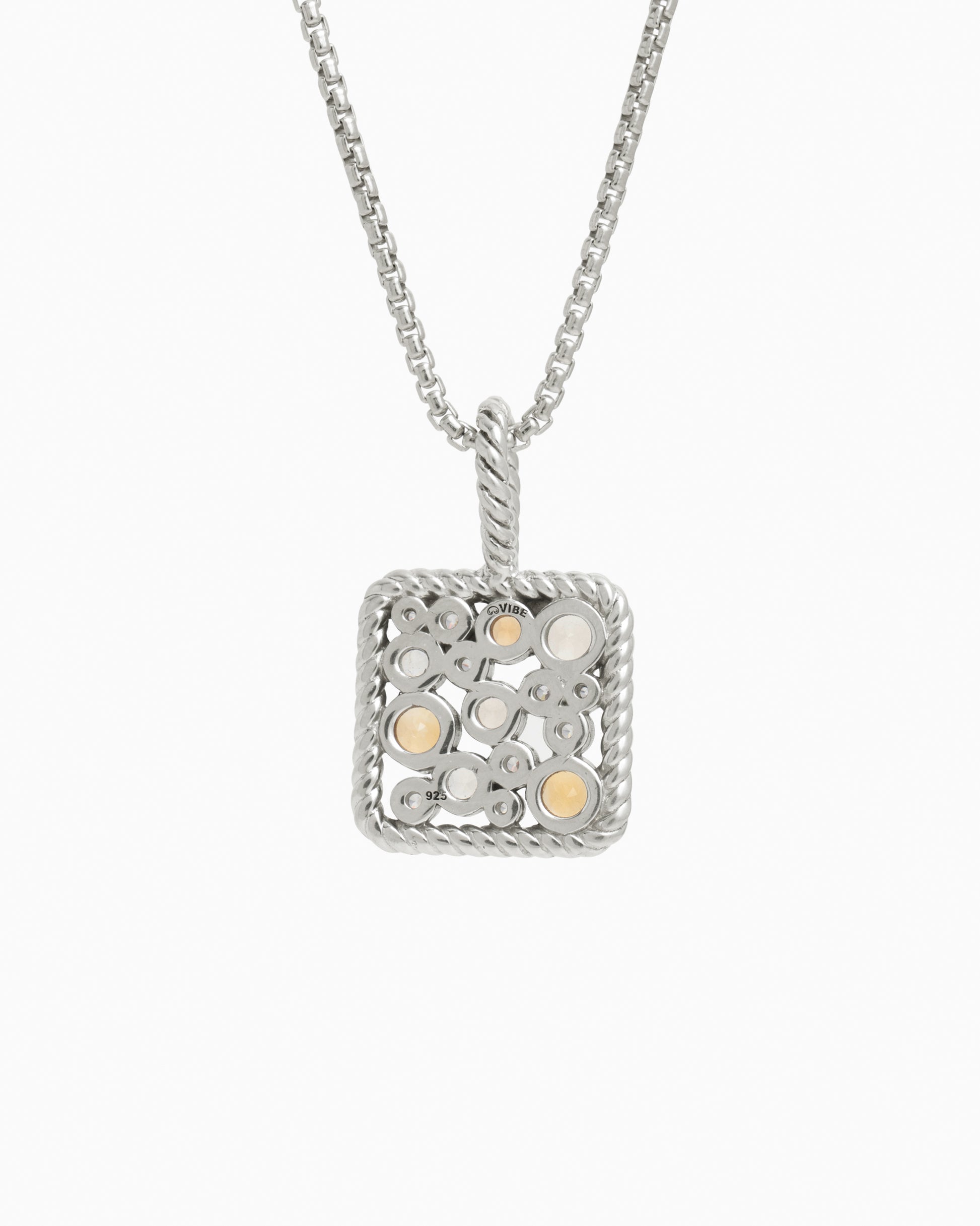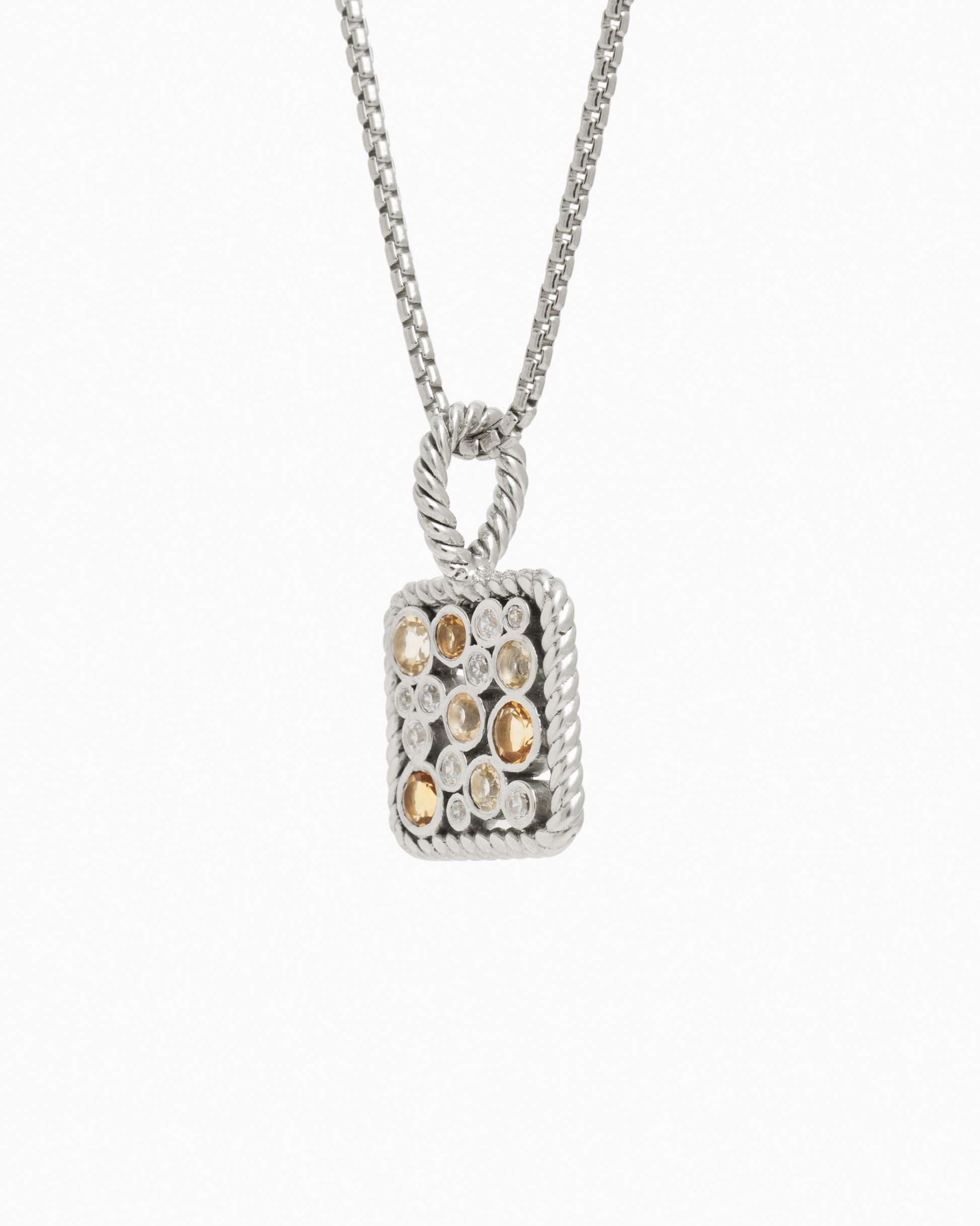 The Twisted Ocean Bubbles Pendant is an eye-catching piece featuring faceted citrine and white zircon stones in various sizes arranged slightly askew in a playful design inspired by a cascade of bubbles. This pendant is handcrafted in sterling silver with twisted detailing along the square frame and bail. Pair with your favorite chain, sold separately.