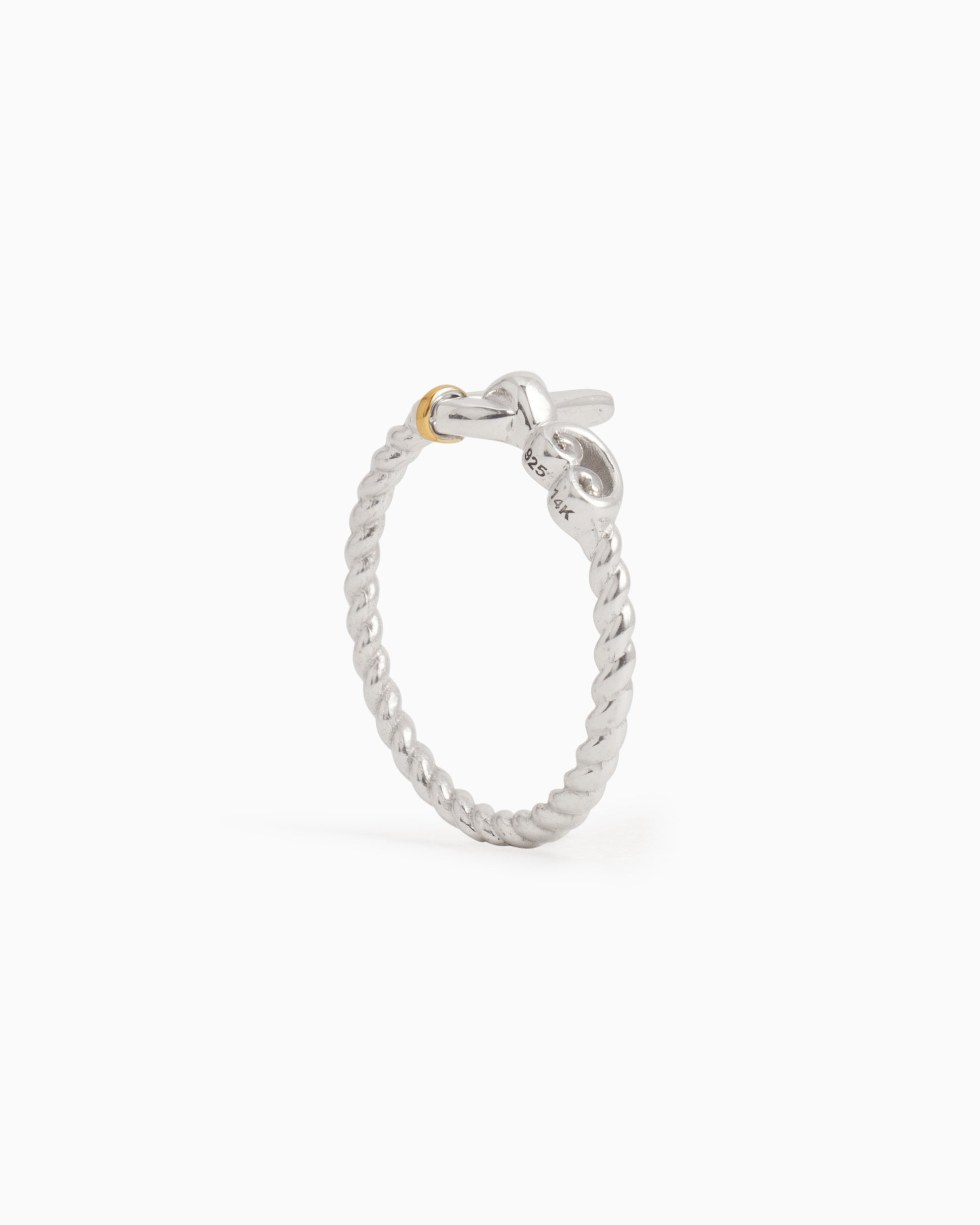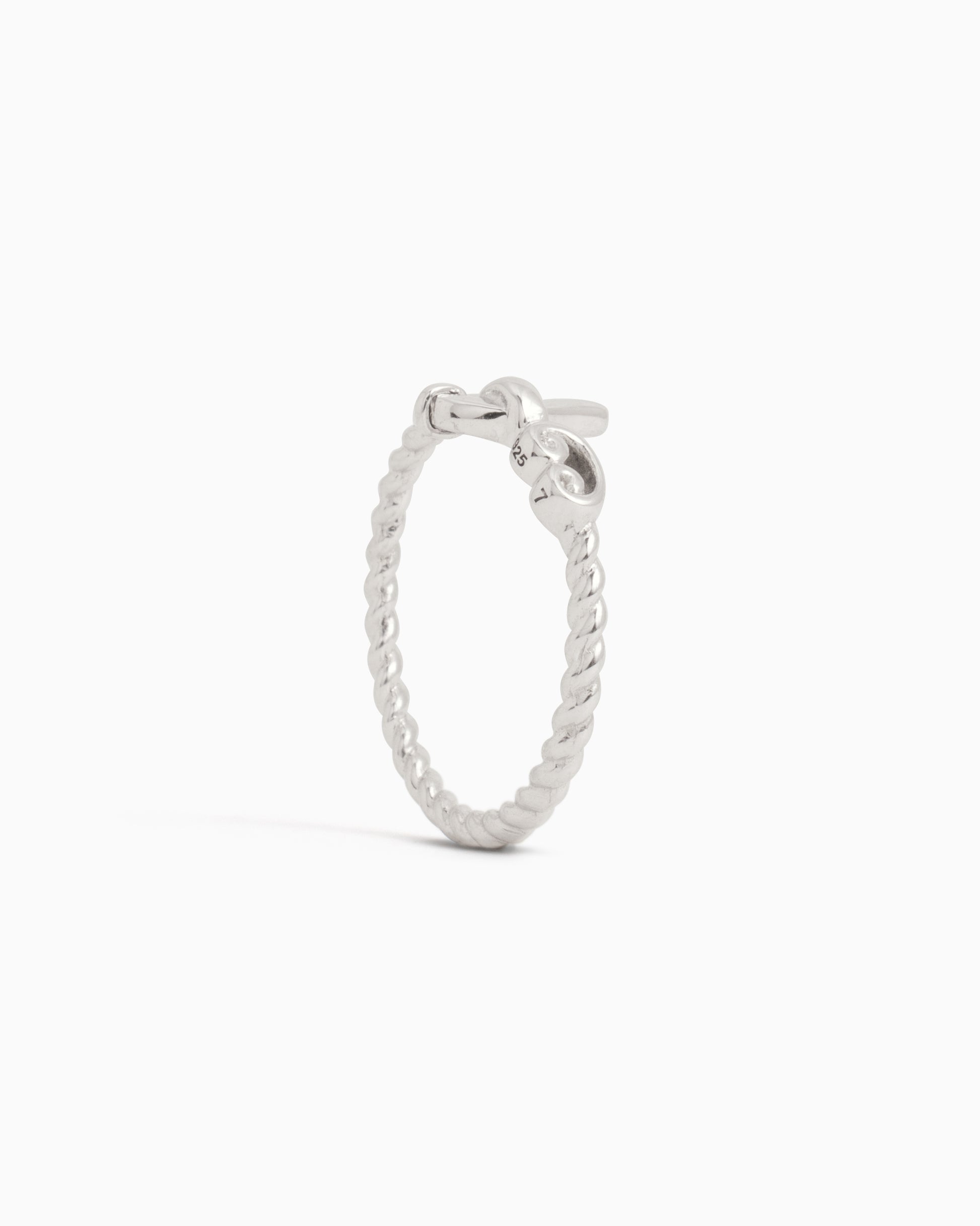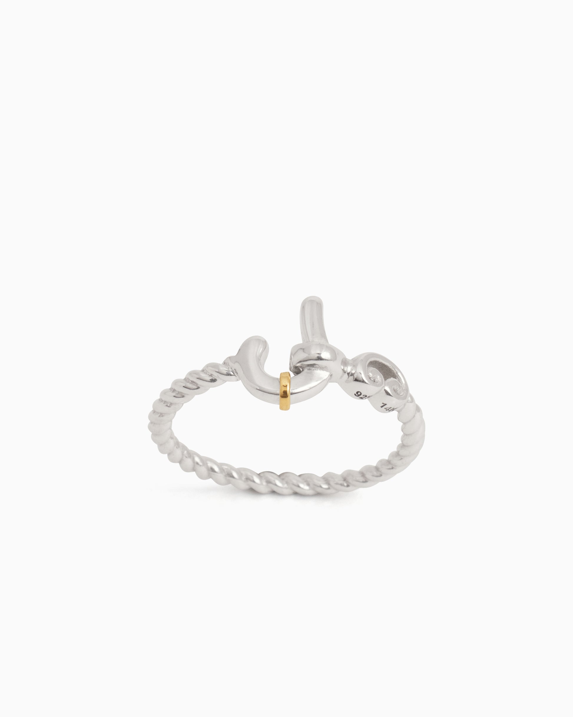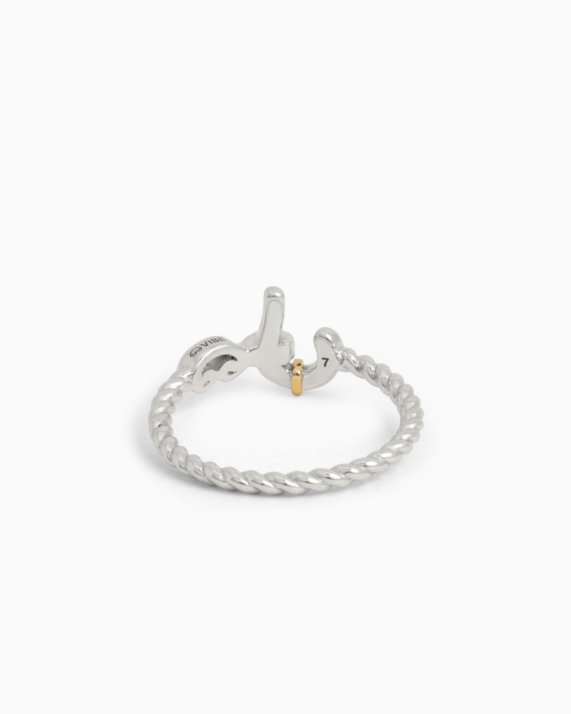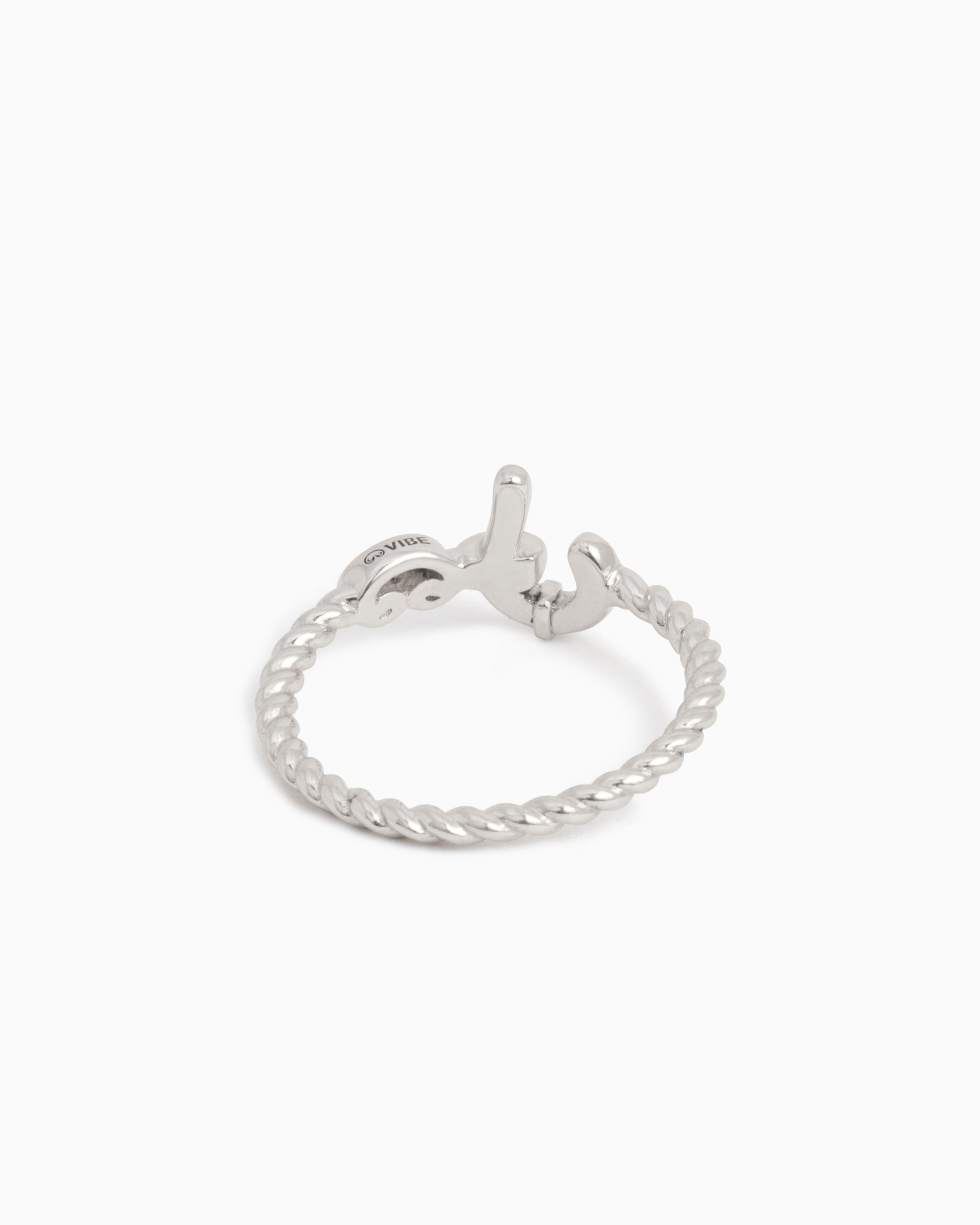 The Twisted St. John Hook Ring with Open Petroglyph is handcrafted in gently hammered sterling silver with an intertwined rope-inspired band. It features a distinctive "J" hook, an open petroglyph design, and a single good luck wrap—a symbol of positivity and intention. In Caribbean tradition, wear the hook inward to keep love close or outward to attract new love.